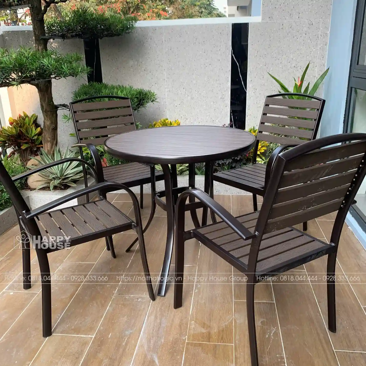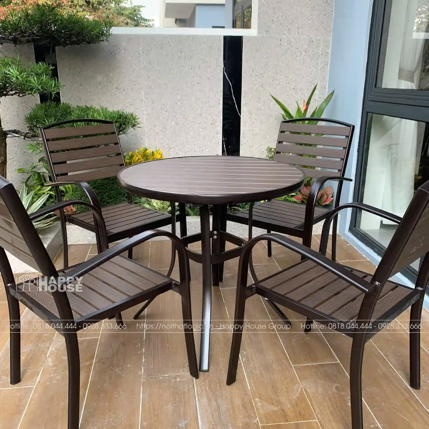 Mục đích sử dụng: Dành cho các không gian cafe ngoài trời, góc thư giãn yên tĩnh, vừa tạo cảm giác thân mật lại vừa thể hiện sự đẳng cấp. Đặc điểm thiết kế: Thiết kế nhỏ gọn, tiết kiệm diện tích, phù hợp với không gian nhỏ hoặc các góc sân vườn. Bề mặt tròn mang lại cảm giác ấm cúng, dễ trò chuyện, giao lưu. Chất liệu composite giúp chống trầy xước, dễ lau chùi, giữ được vẻ đẹp theo thời gian.