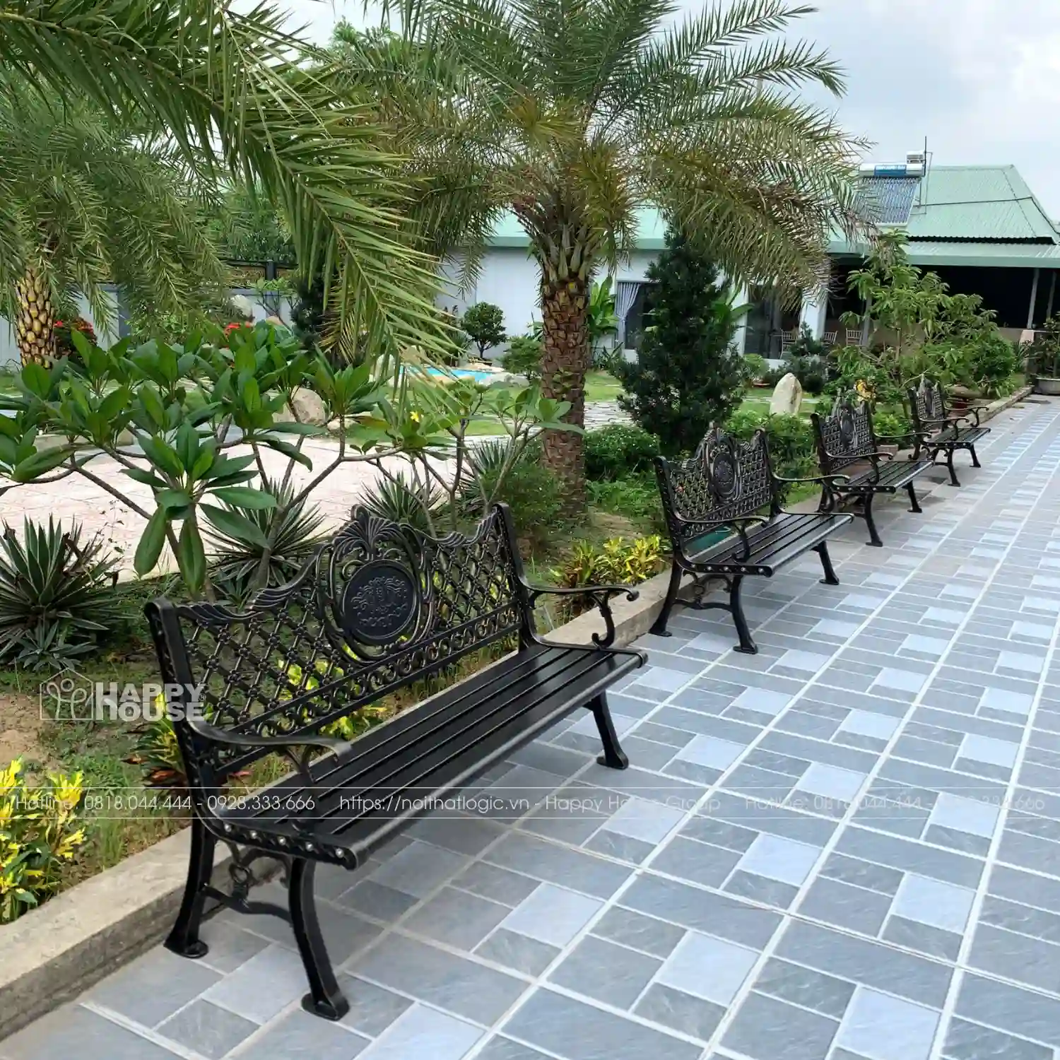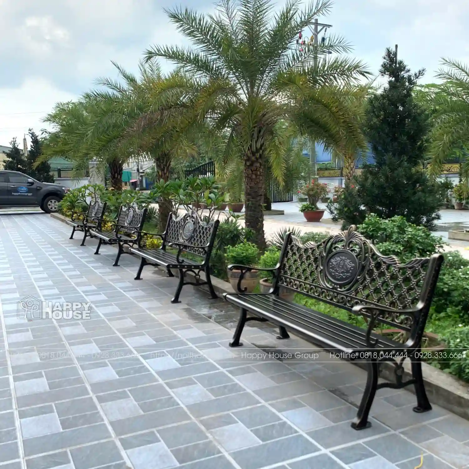 Dự án cung cấp ghế cho khuôn viên sân vườn cao cấp tại Bình Dương thể hiện tầm nhìn về một không gian sinh thái hiện đại, sang trọng. Số lượng ghế lớn được bố trí đồng bộ, tạo thành dãy ghế dài mang phong cách cổ điển châu Âu, phù hợp với không gian ngoại thất cao cấp. Cư dân và khách tham quan đều có thể tận hưởng, thư giãn trong không gian được chăm chút cẩn thận này.