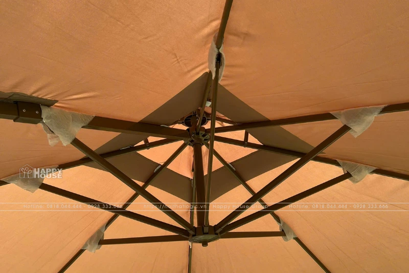Tán dù: Vải Polyester dày dặn, chống thấm nước, chống tia UV hiệu quả, bảo vệ khu vực thư giãn khỏi nắng gắt.