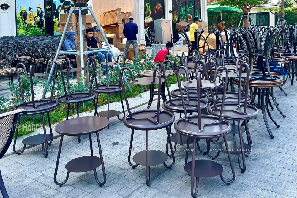 Dự án tại Menas Zone Vỹ Dạ không chỉ gây ấn tượng bởi số lượng "hàng trăm bộ bàn ghế" mà còn bởi sự đa dạng về chủng loại, đáp ứng hoàn hảo các nhu cầu sử dụng khác nhau trong không gian ngoài trời rộng lớn của dự án: