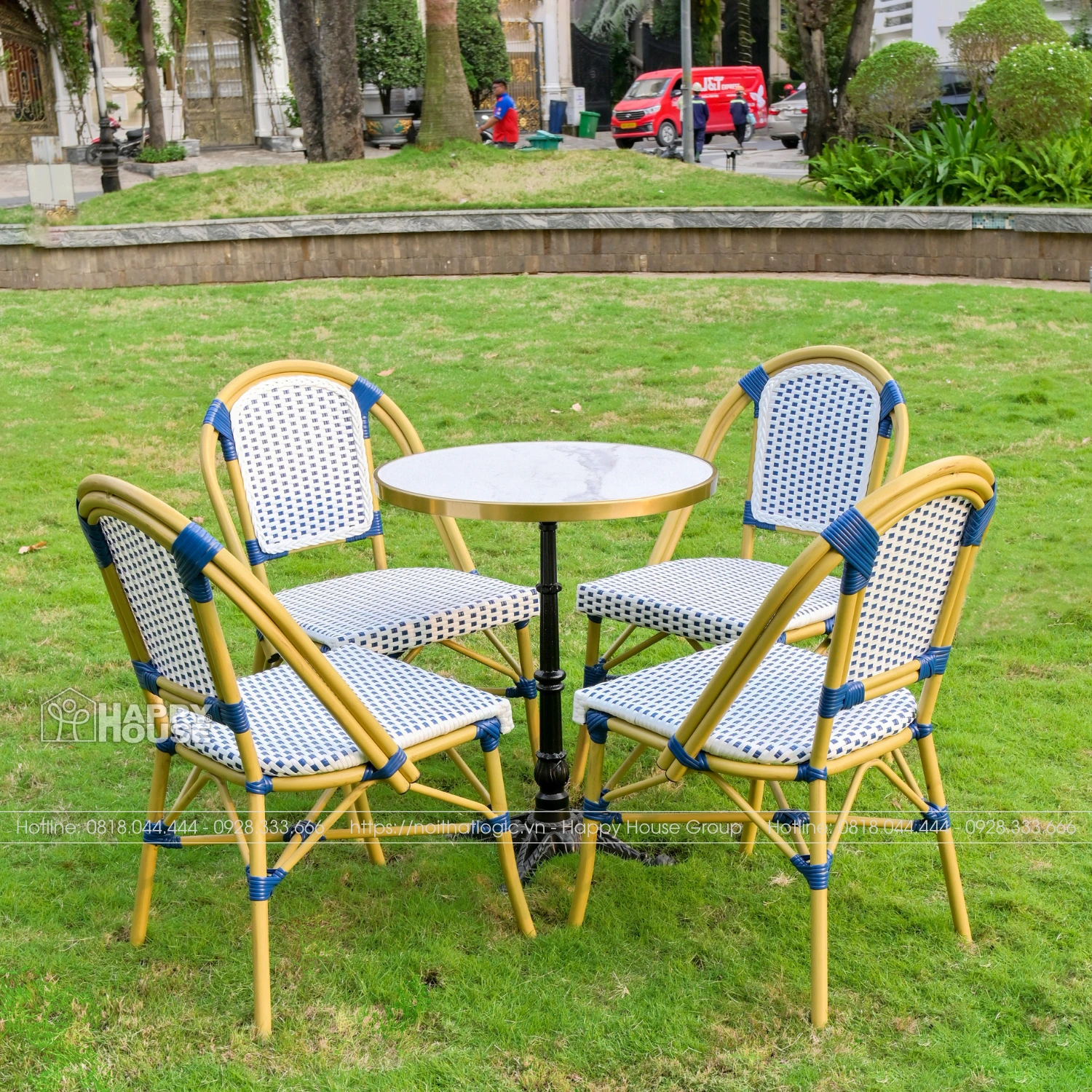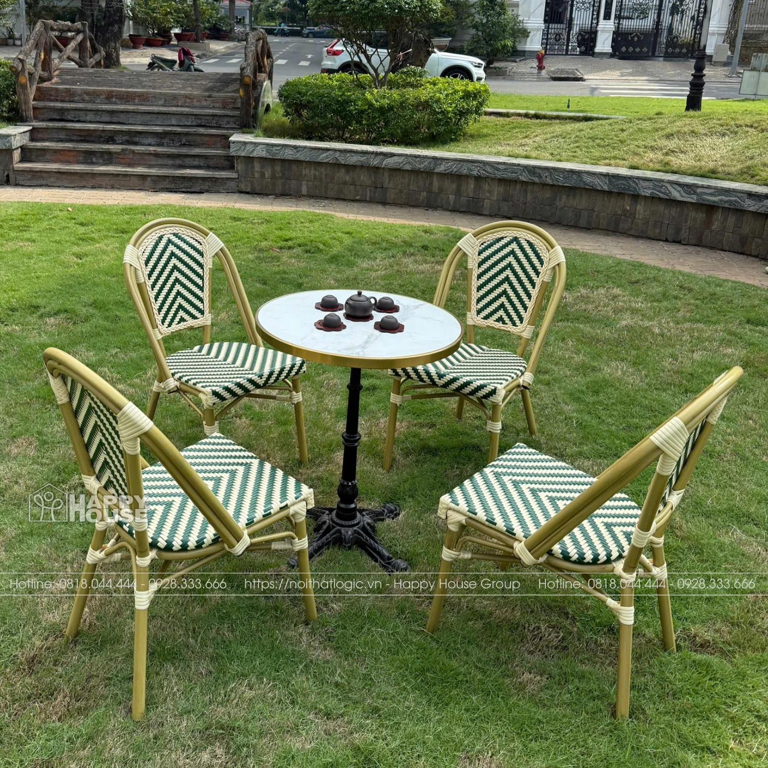 Kết hợp cùng khung nhựa hoặc kim loại bền bỉ, sản phẩm có khả năng chịu lực tốt, ít bị ảnh hưởng bởi thời tiết, đảm bảo độ bền trong quá trình sử dụng ngoài trời. Đặc biệt, mức giá hợp lý giúp đây trở thành lựa chọn lý tưởng cho nhiều mô hình quán cafe, từ bình dân đến tầm trung.