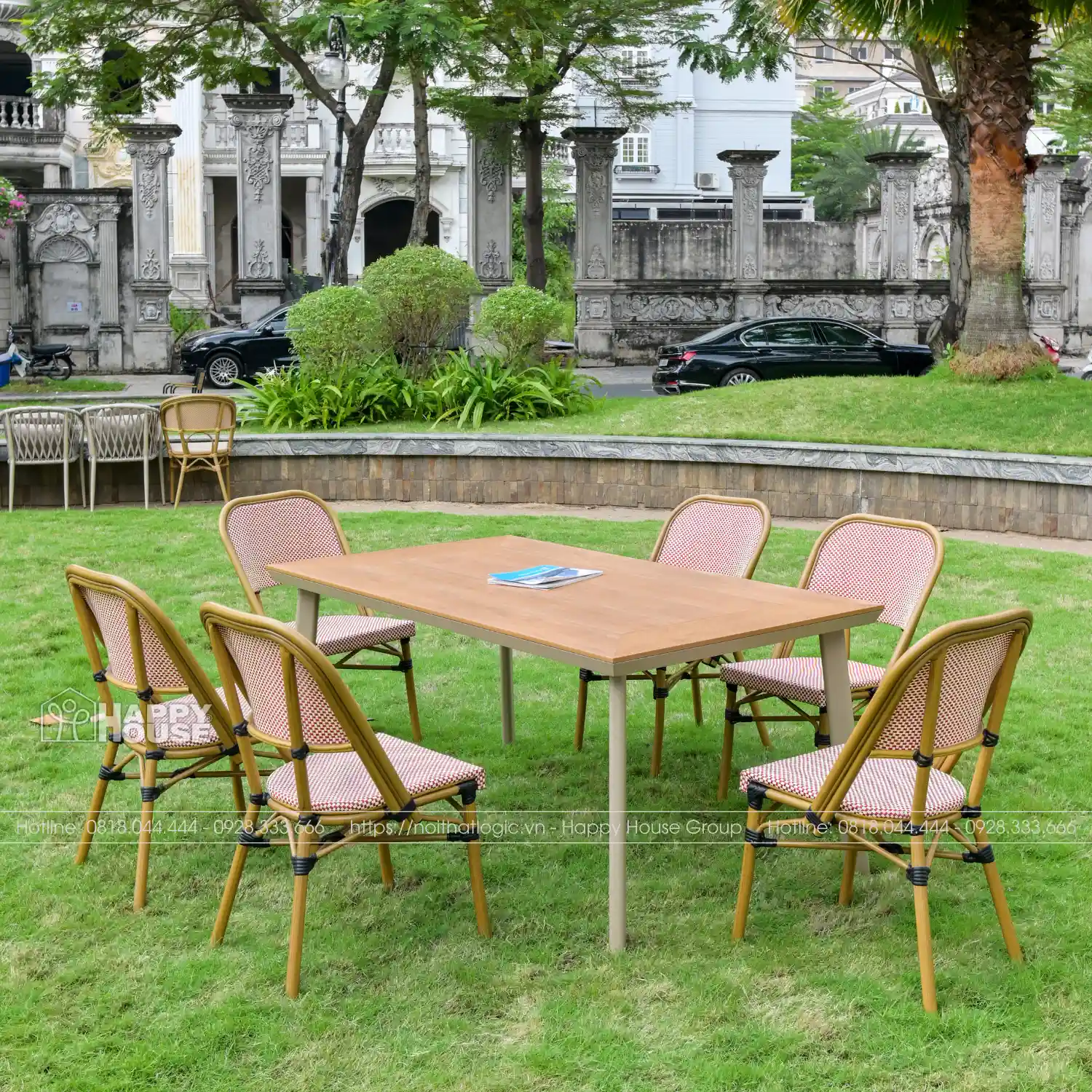 Quy cách: Bộ gồm 1 bàn + 6 ghế