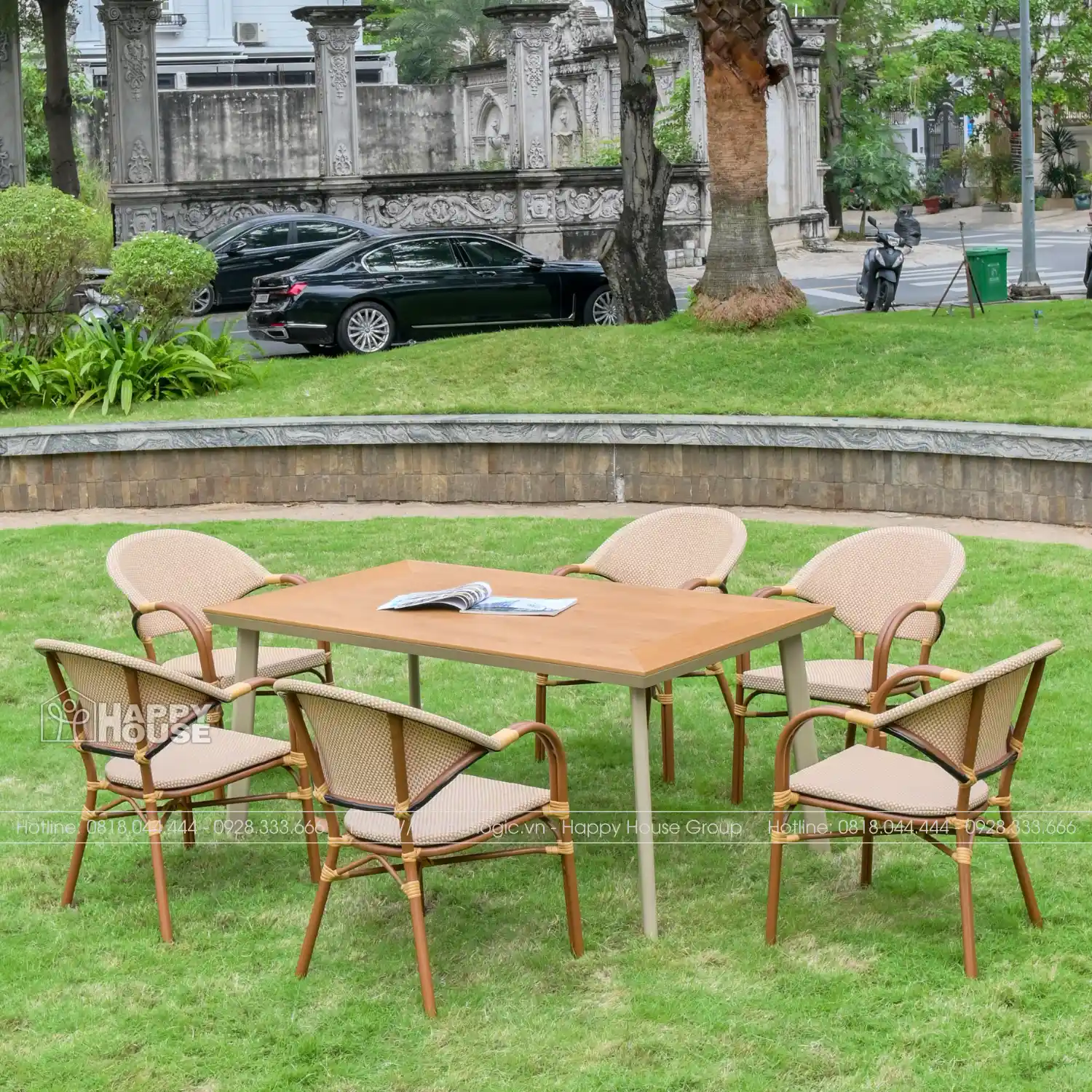 Quy cách: Bộ gồm 1 bàn + 6 ghế