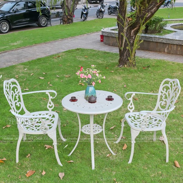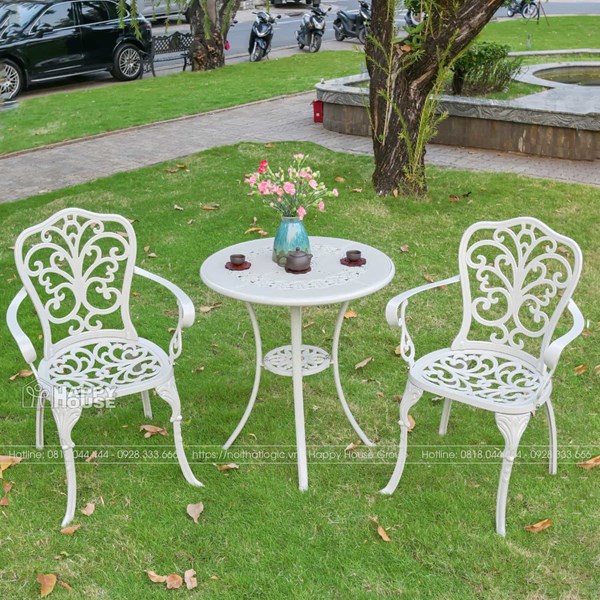 Bộ Bàn Ghế Nhôm Đúc 2 Ghế Màu Trắng NDD65-2GCBT
