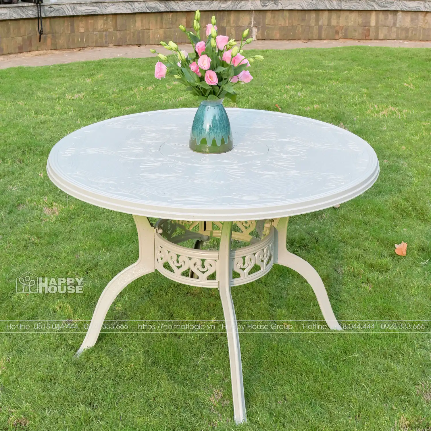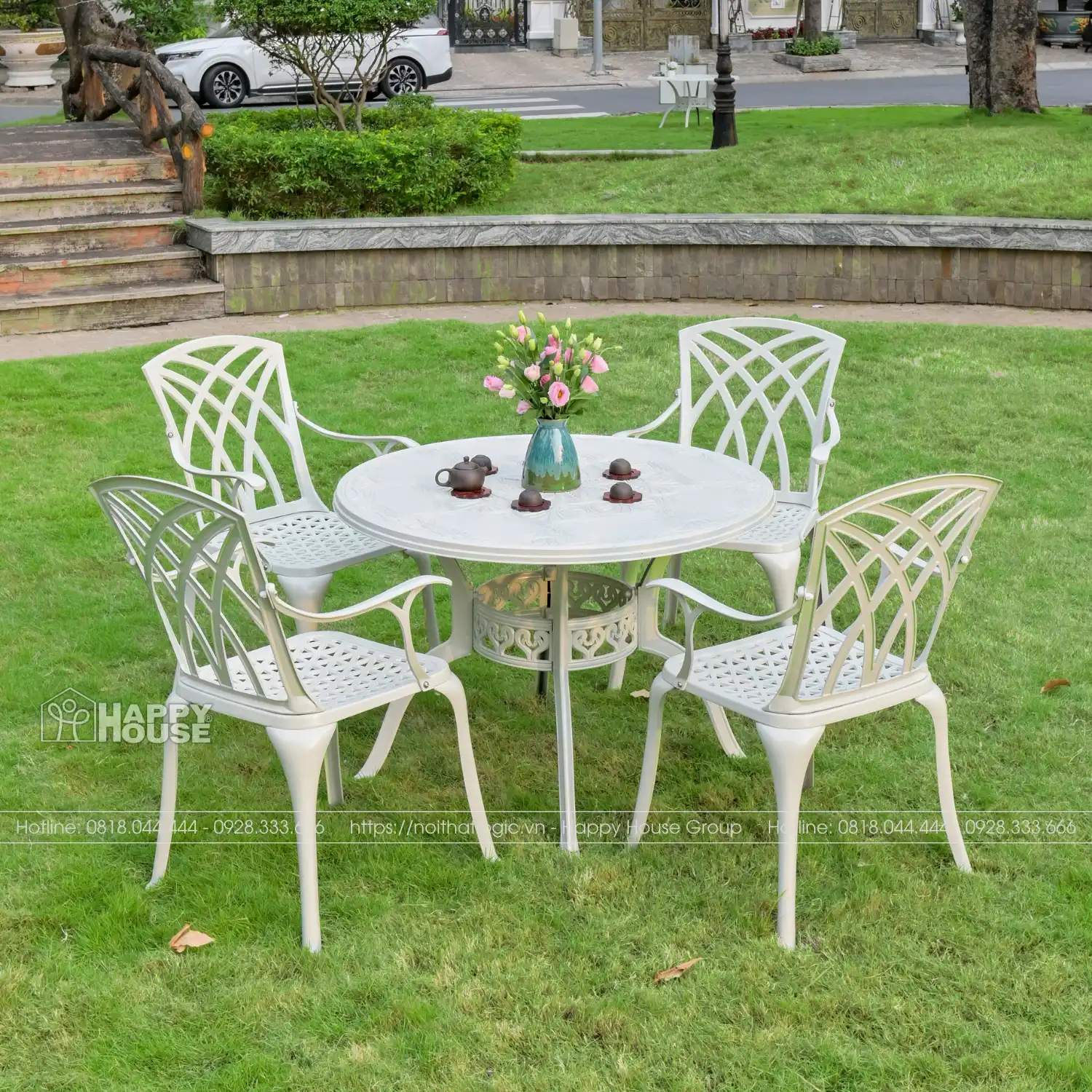 Bộ bàn ghế nhôm đúc mặt đá tròn cao cấp để sân vườn NDMD80-4TT