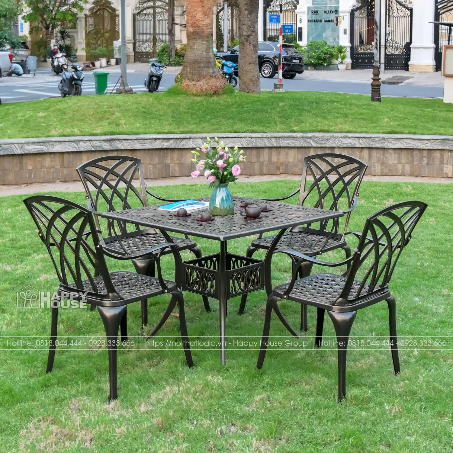 Bộ Bàn Ghế Nhôm Đúc Mặt Vuông 4 Ghế NDV90-4G54D
