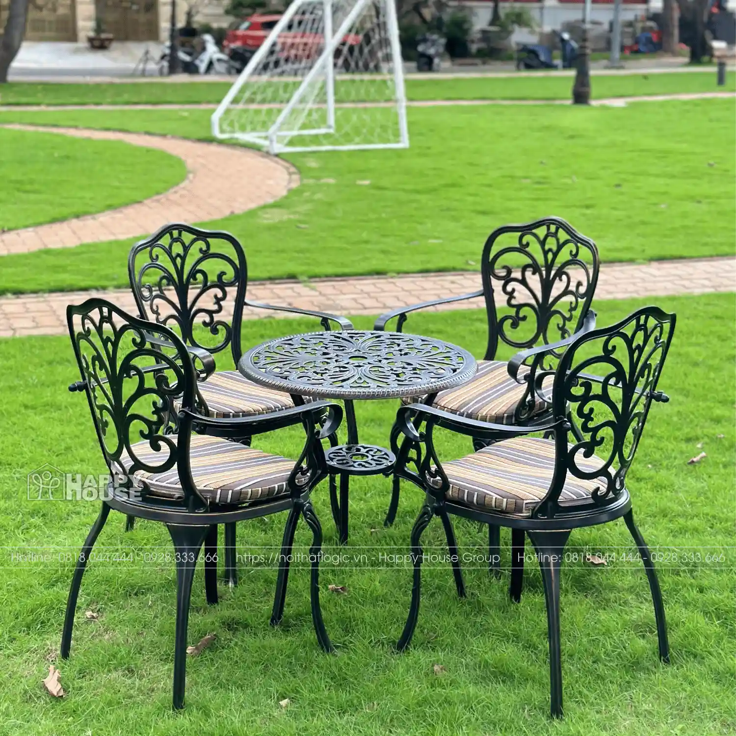 Bộ Bàn Ghế Nhôm Đúc Sân Vườn/Ban Công 4 Ghế - Bàn Tròn 80cm Hợp Kim Sơn Tĩnh Điện Đa Màu (Giá Sốc Chỉ 9.9 Triệu)