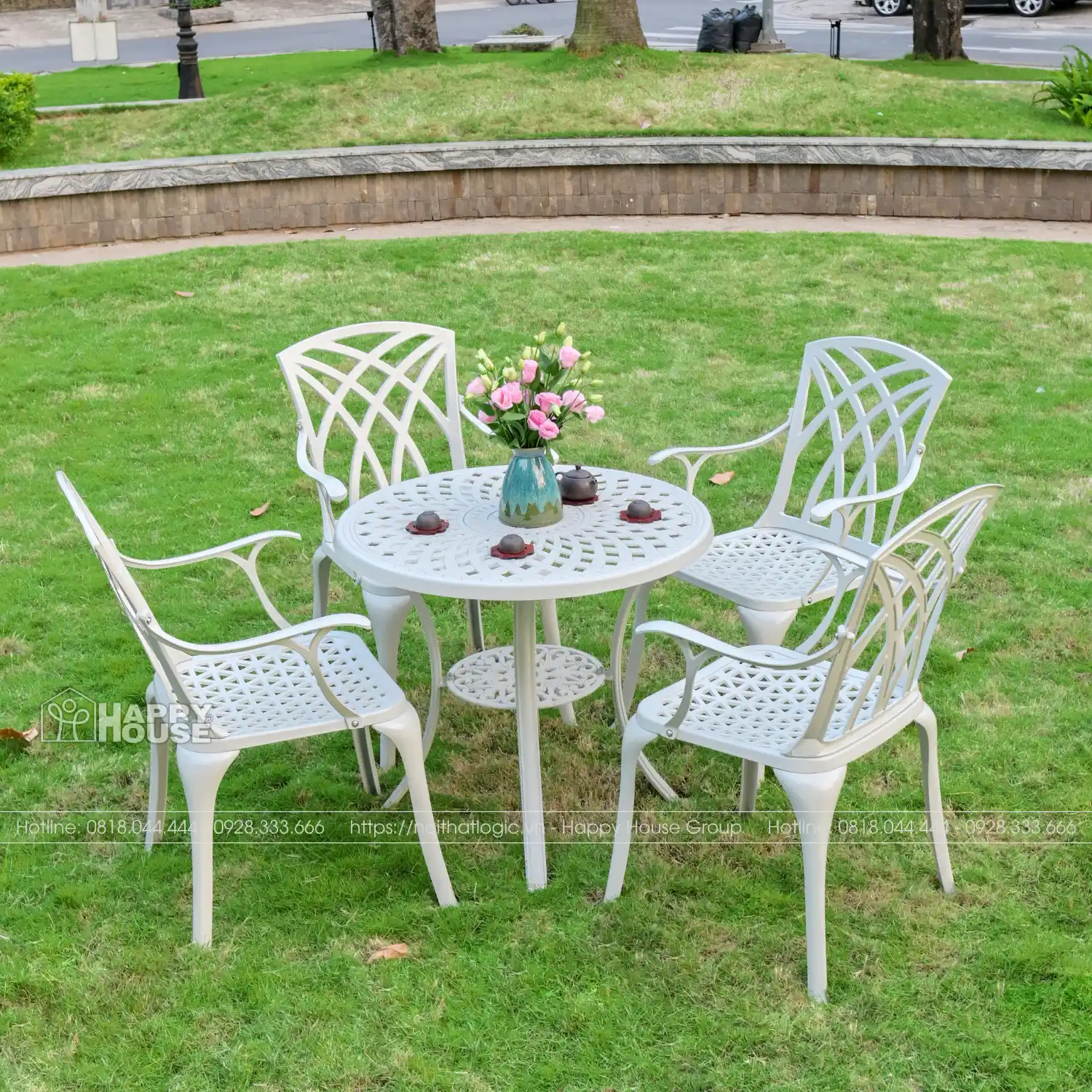 Chất liệu nhôm đúc sơn tĩnh điện không chỉ mang lại độ bền cao mà còn chống được tác động của thời tiết, từ ánh nắng mặt trời cho đến mưa và gió. Điều này giúp bộ bàn ghế duy trì vẻ đẹp và chất lượng sử dụng lâu dài, tiết kiệm chi phí bảo dưỡng và bảo trì.