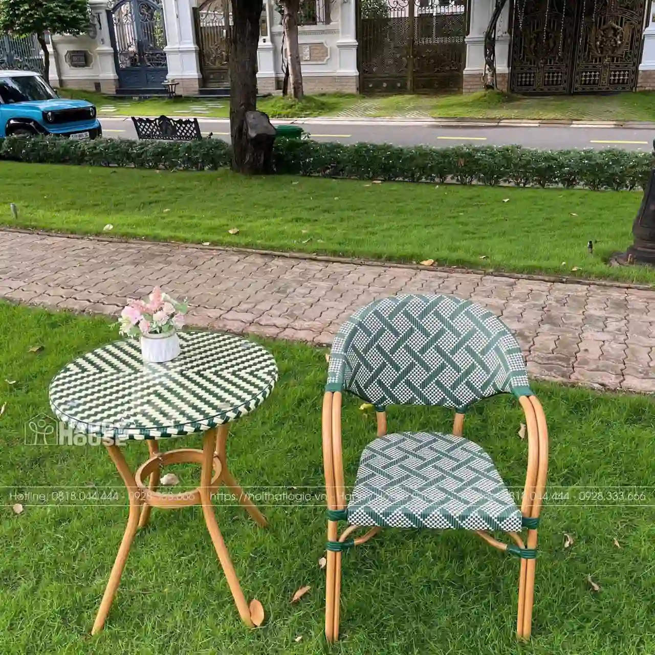 Bộ bàn ghế cà phê ngoài trời Bàn tròn kết hợp ghế lưới textilene cao cấp